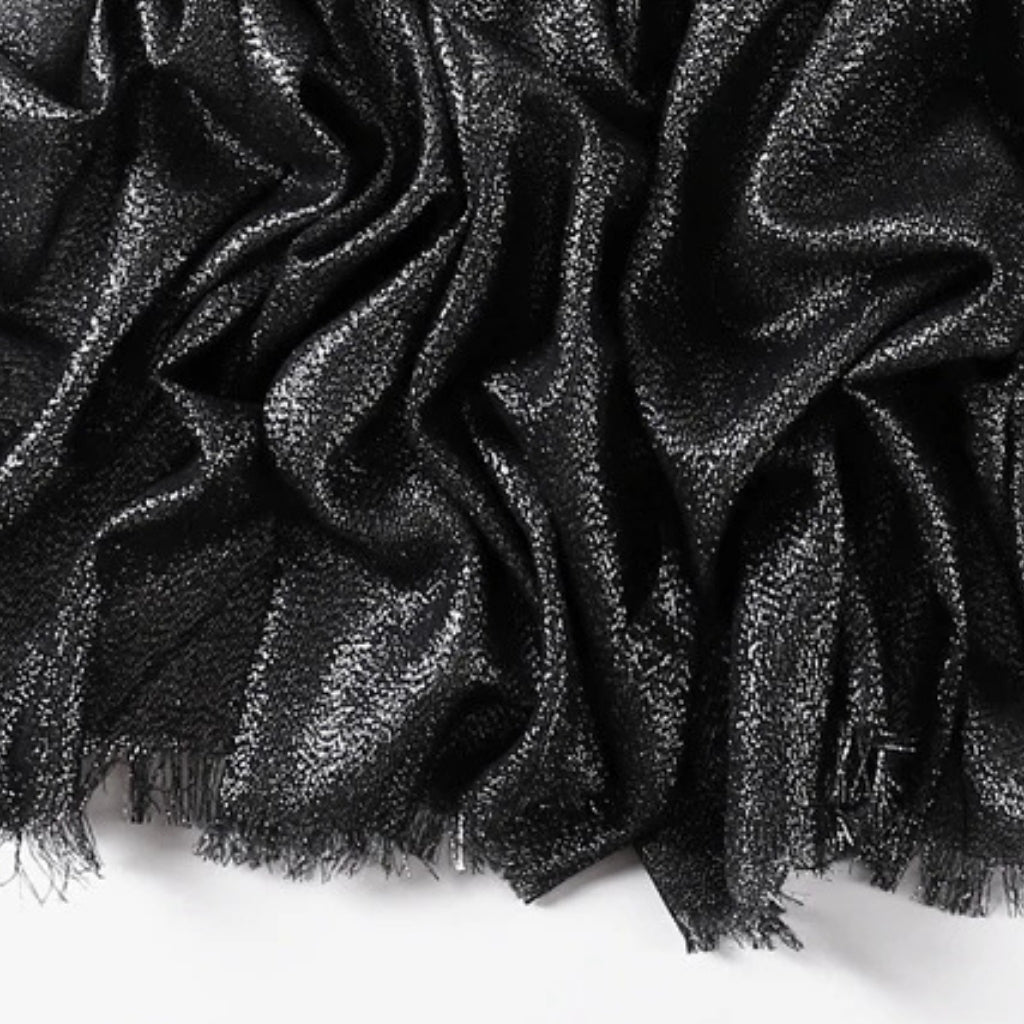 - Motif : Uni noir avec effet scintillant discret intégré au tissage,