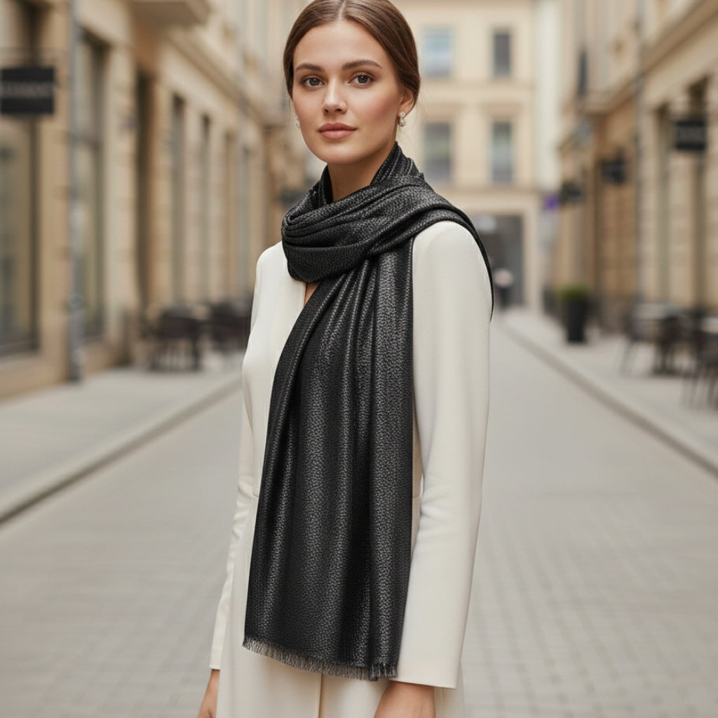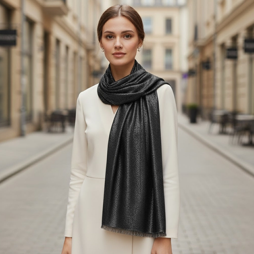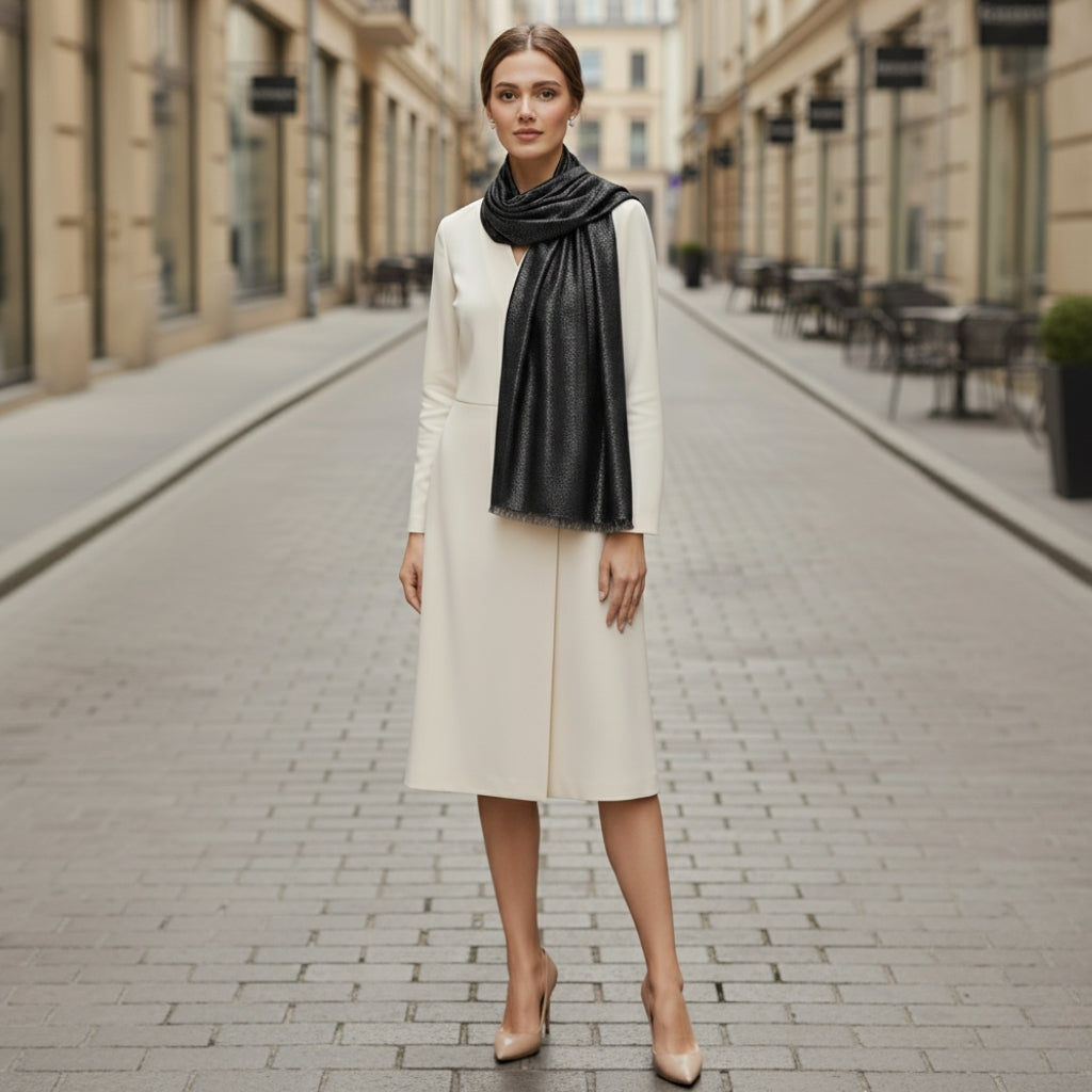 - Type : Étole élégante, à porter autour du cou ou drapée sur les épaules,