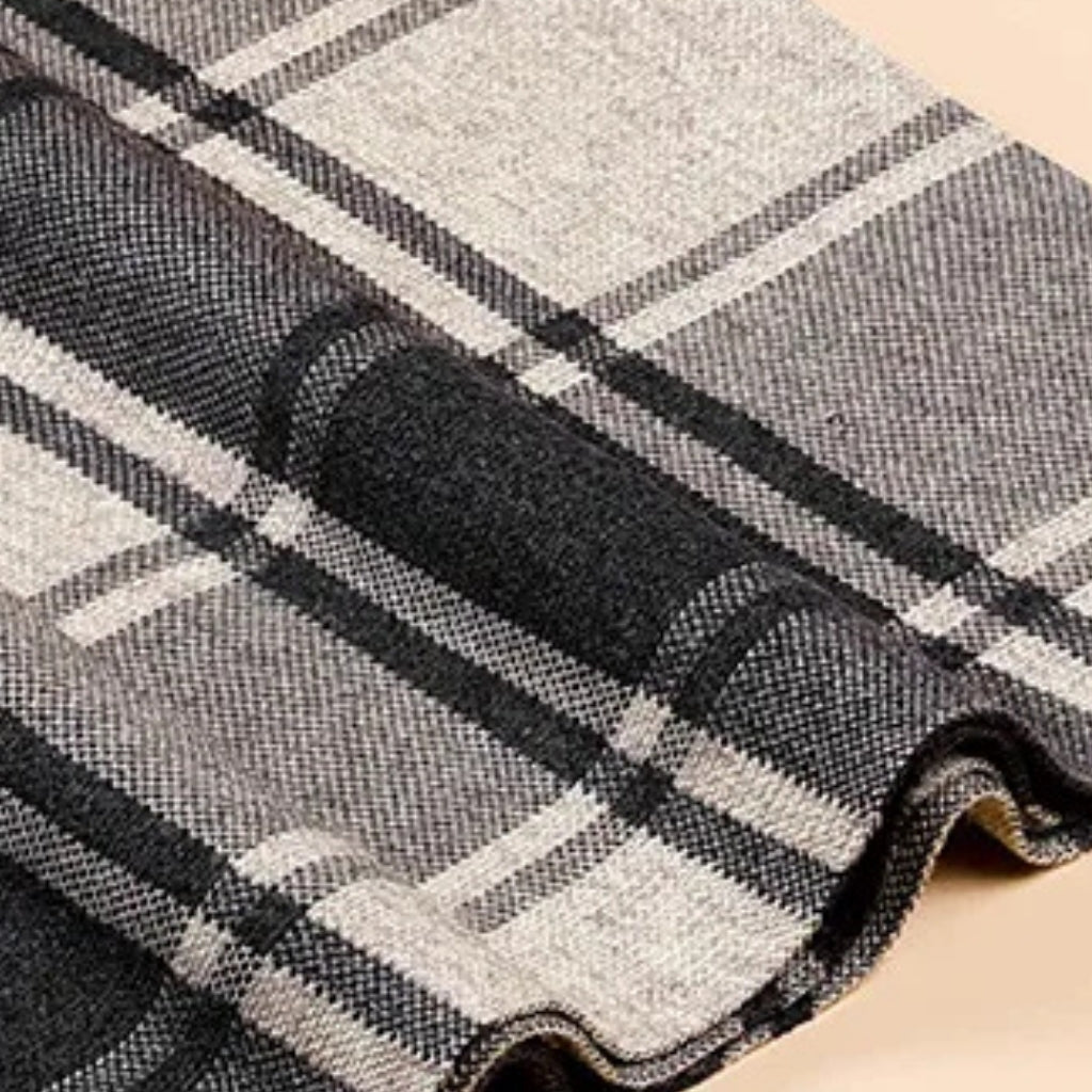 - Motif : Rayures larges, carreaux ou damiers dans des tons neutres et chic,
