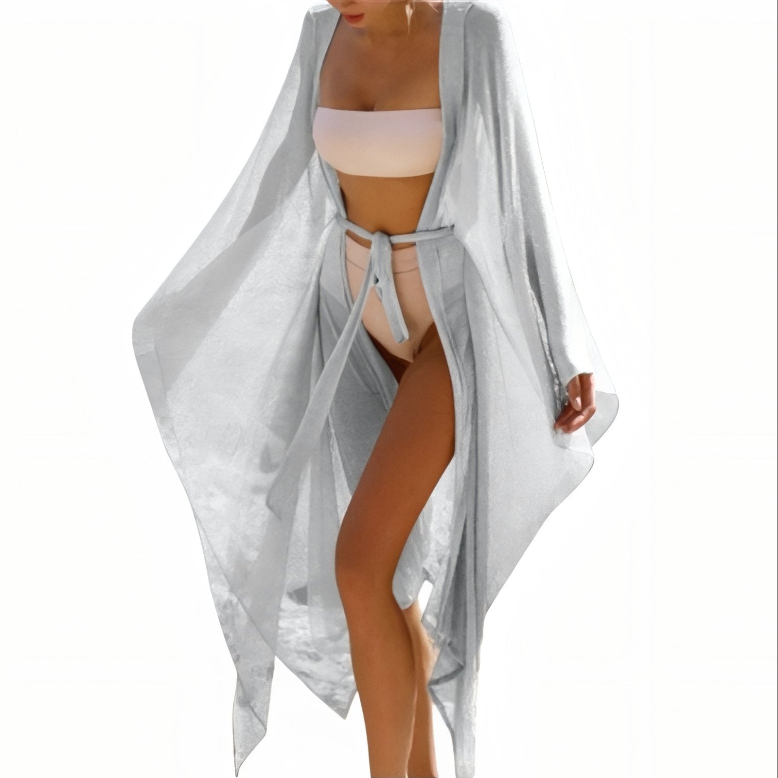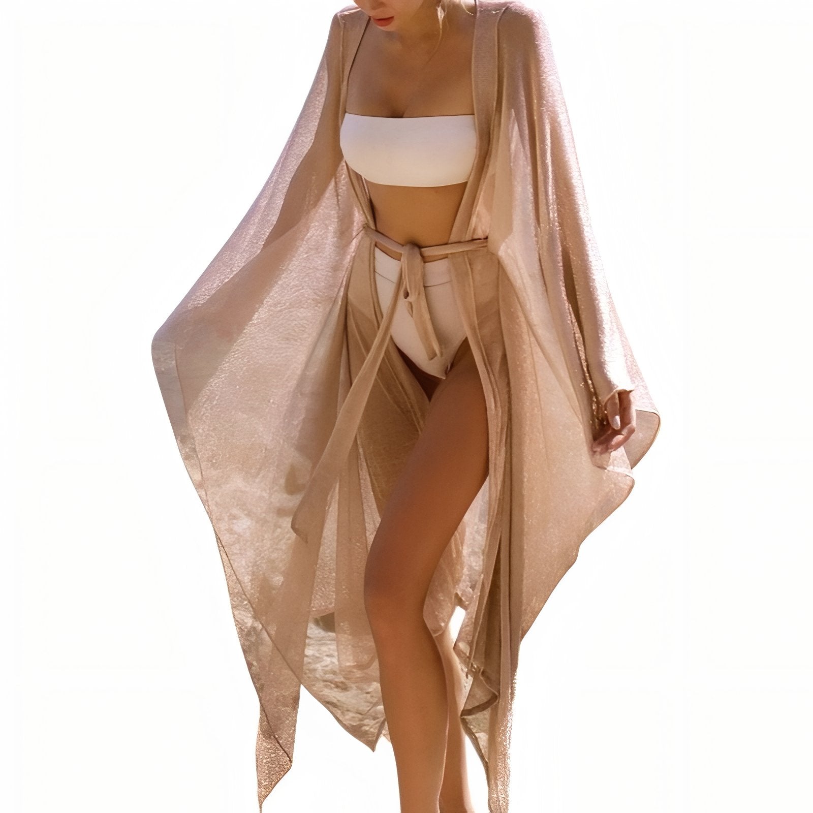 - Allure kimono fluide, qui glisse avec grâce sur un maillot ou une robe,